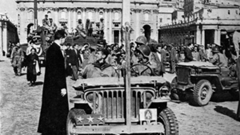 Am 4./5. Juni 1944 wurde Rom durch die Amerikaner vom Regime der Nationalsozialisten und ihrer faschistischen Helfershelfer befreit. Alle 50 Personen, die sich monatelang am Campo Santo Teutonico versteckt hatten, kehrten wieder in ihre Wohnungen zurück. Der Held des Campo Santo Teutonico, der irische Priester Hugh O'Flaherty, der am Kolleg wohnte und von dort aus in der ganzen Stadt Rom 6000 Menschen vor den Nazis und Faschisten versteckt hatte, war einer der ersten, der den amerikanischen Viersternegeneral Clark auf dem Petersplatz begrüßte (siehe Bild). Inzwischen erinnert eine Gedenktafel auf dem Campo Santo Teutonico an diesen großartigen Priester, der - Ironie der Geschichte - vom deutschen Kolleg aus Tausende vor den Deutschen gerettet hat.