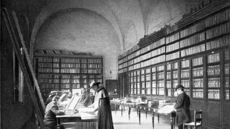 Mit Beginn des Jahres 1881 wird der von Kardinal Joseph Hergenröther eingerichtete Archivsaal dem gelehrten Publikum freigegeben. Hergenröther war gefeierter Kirchenhistoriker in Würzburg gewesen und zur Freude der deutschen Historiker und der Görres-Gesellschaft, zu deren Ehrenpräsidium er gehörte, von Papst Leo XIII. nach Rom berufen worden. Genau aus dieser Zeit stammt aus seiner Feder ein vertrauliches, detailliertes Schreiben an interessierte Kreise der Görres-Gesellschaft, in dem er seine organisatorischen Schwierigkeiten bei der Einrichtung des neuen „Studirsaals“ beschreibt, den schweren Stand der Deutschen im Vatikan, das Wohlwollen Leos XIII. und das Treiben des päpstlichen Hofes. Nichts Neues unter der Sonne, wenn man hört, dass auch schon damals Dokumente vom Schreibtisch des Papstes verschwinden konnten: