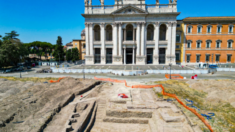 Da vom alten, mittelalterlichen Papstpalast nach den Demolierungen unter Sixtus V. (16. Jh.) so gut wie nichts übrig geblieben ist und auch keine zeitgenössische Dokumentation besteht, ist es immerhin beachtlich, dass jüngste Grabungen direkt vor der Hauptfassade der Basilika schon nach wenigen Spatenstichen mutmaßliche Reste der Palastanlage freigaben.