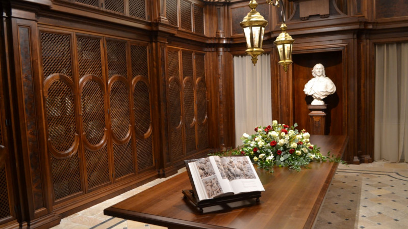 Das bedeutende Archiv der von Santa Maria dell'Anima ist vollständig renoviert und erweitert worden. Die ursprünglichen Fresken und Schmuckleisten sind wieder sichtbar, nachdem die alten Regale entfernt wurden. Franz Xaver Brandmayr übergab die neuen Archivräume am 4. Oktober der Öffentlichkeit. Das bisher von Dr. Johan Ickx geführte Archiv wird künftig betreut von Dr. Andrea Pagano (Rom) und PD Dr. Tamara Scheer (Wien). Die Anima gehört zu den großen Förderinnen des Römischen Instituts der Görres-Gesellschaft, indem sie seit fünf Jahren einen Stipendiaten bzw. eine Stipendiatin finanziert. Der bisherige große Raum mit herrlicher Bemalung wird zu einem repräsentativen Ausstellungsraum. Auf dem Bild zu sehen ist der neue Studienraum mit den Archivschränken (Foto: M. Hesemann).