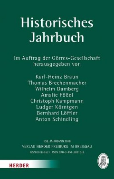Das "Historische Jahrbuch" der Görres-Gesellschaft erscheint seit der jüngsten Ausgabe bei Herder. Noch kann man dort nicht die online-Ausgabe und einzelne Aufsätze bestellen, aber dieser Service wird wohl in Zukunft angeboten werden. Die HJ veröffentlicht häufig - nicht ausschließlich - die Vorträge der Sektion für Geschichte auf den Generalversammlungen der Görres-Gesellschaft. Im 138. Jahrgang, 2018, finden sich unter anderem Beiträge von: