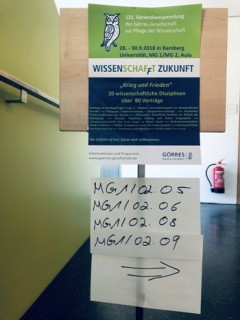 Die 121. Generalversammlung der Görres-Gesellschaft wartete in Bamberg mit exzellenten Vorträgen auf. Hervor stach der Festvortrag von Johannes Hasselbeck über den Dreißigjährigen Krieg in Bamberg. Öffentliche Wahrnehmung zu erhalten, ist heutzutage allerdings schwer. Das zeigt sich zumindest im geringen online-Echo der Generalversammlung trotz sehr guten Besuchs (ca. 400 Teilnehmer), Prominenz und hoch spannender Themensetzung. Immerhin berichtete Der Neue Wiesenbote über das Rahmenthema Krieg und Frieden. Die Sektion für Rechtswissenschaft unter Prof. Arnd Uhle (Mitglied des Direktoriums des RIGG) hat es zu einem überregionalen Zeitungsbeitrag in der Tagespost über die Rechte der Kinder geschafft.  Die diesmal mit einer Tagung in der Tagung vertretene Sektion für Medizin fiel trotz ihres ausgezeichneten Programms über das Gesundheitssystem im demographischen Wandel leider aus der tagespolitischen Wahrnehmung heraus. Die Website der Deutschen Bischofskonferenz berichtete über die Ehrung ihres Sekretärs Pater Dr. Hans Langendörfer