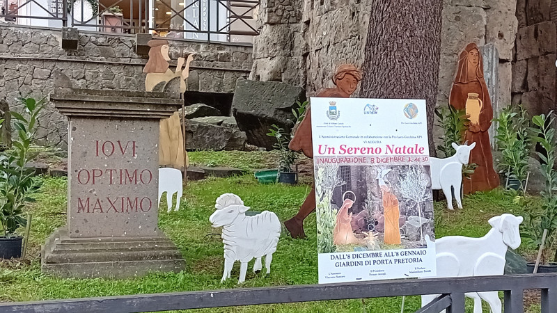 - Ein gutes Glas Rotwein in der Bottega Pia tröstet über den Anblick der Adventsdekoration hinweg, auf die man an der Porta Pretoria stößt: Da steht ein antiker Fake-Jupiteraltar inmitten des Hirtenfeldes von Betlehem (siehe das Bild oben).