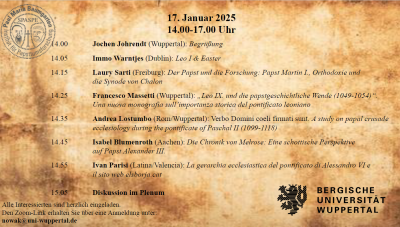 17. Januar: Studientag des Paul Maria Baumgarten-Instituts in Wuppertal zur Papstgeschichte