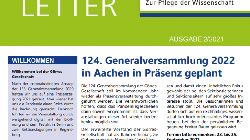 Zum Jahresende ist der neue Newsletter der Görres-Gesellschaft erschienen (2/2021). Er gibt Auskunft über die vielfältigen Initiativen der Sektionen und schenkt auch der Sponsorenreise des RIGG Aufmerksamkeit (Seite 5).