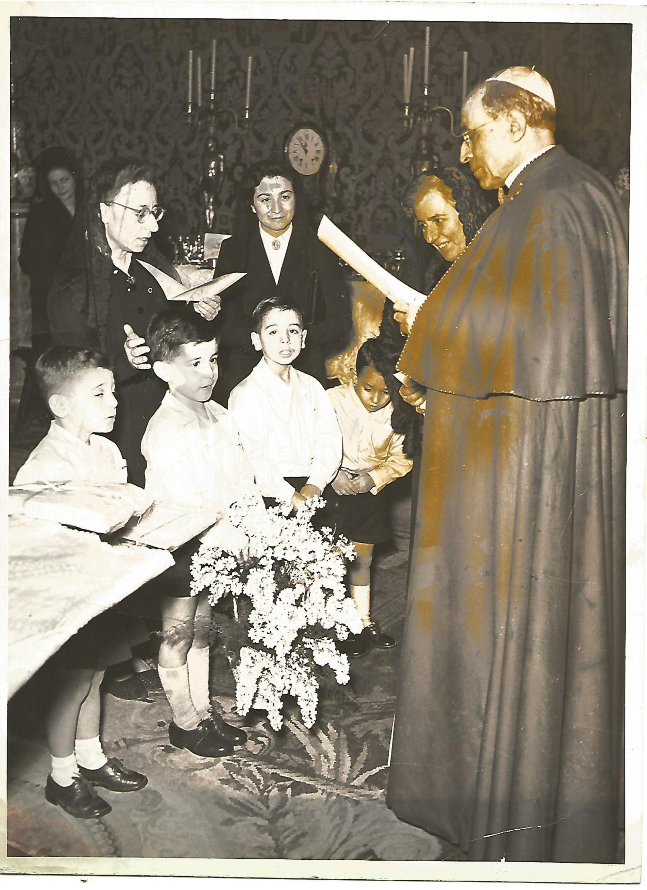 Claudio Andronico, 8 Jahre alt (2. v.l.), Mitglied einer Vertretung des Ital. Katholischen Jugend ausgewält, um Papst Pius XII Geburtstagsglückwünsche zu geben