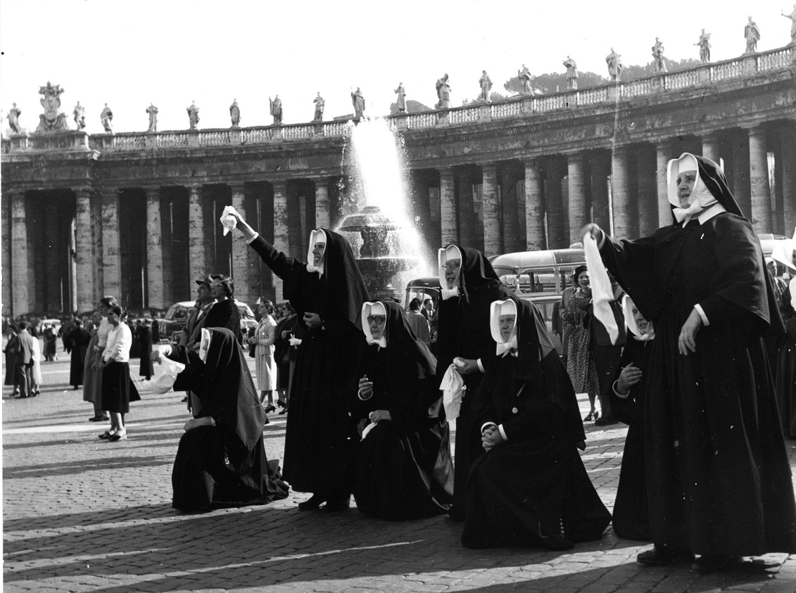 Am 16. November 1957 kam Papst Pius XII. von seinem Genesungsaufenthalt in Castelgandolfo zurück. Als ihm die Schwestern der Christlichen Liebe vom Campo Santo mittags mit vielen Gläubigen auf dem Petersplatzt zuwinkten, wurden sie fotographiert, und am 18./19. November erschien das Foto im Osservatore Romano verkleinert: Man sieht kniend die Oberin Albertis Pützer (siehe unten). Auf dem größeren Original erkennt im Hintergrund mehrere Reisebusse: Damals konnte man noch ohne weiteres auf den Petersplatz fahren.