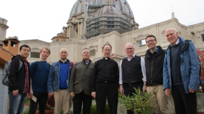 Im Rahmen einer kirchenhistorischen Exkursion besuchten Anfang April Prof. Dr. Mariano Delgado und Prof. Dr. Franz Mali mit ihren Studenten römische Archive und Bibliotheken, darunter auch das RIGG und die Bibliothek des Campo Santo Teutonico. Ansprechpartner war Dr. Lorenzo Planzi, der in Fribourg ein Postdoc-Projekt verfolgt und derzeit am Campo Santo ist. Delgado leitet die Sektion für Religionswissenschaft der Görres-Gesellschaft.
