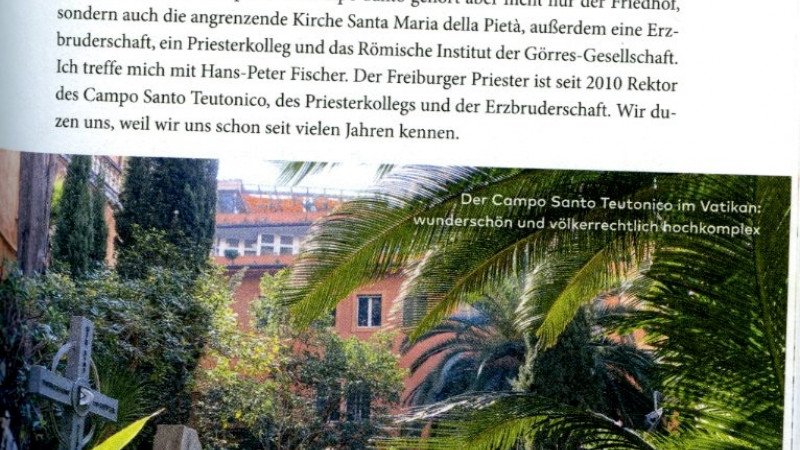 The successful author of travel guides Stefan Gödde has published a Polyglot Rome Guide after his visit to Rome. In it, he not only gives a very detailed account of the Campo Santo Teutonico with a long interview with Rector Dr Hans-Peter Fischer, but also mentions the Roman Institute of the Görres Society (pp. 57-61).