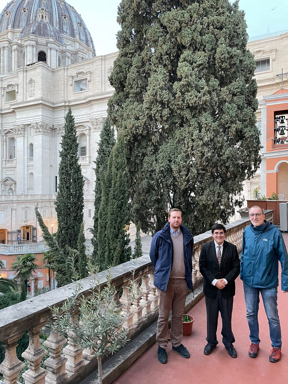 In March, eager and interested relatives of the former director of the Roman Institute of the Görres Society Stephan Ehses (+ 1926) again visited the Campo Santo Teutonico, where his grave is located. Ehses came from a wine-growing family in Zeltingen. The Zucker family keeps the memory of their ancestor alive, and in doing so they delight the Institute with gifts of wine from Zeltingen, the birthplace of Stephan Ehses. This time they even brought a bottle of the "Zeltinger Schloßberg Auslese" (1994), which - certainly arranged by Stephan Ehses - was on the menu of the general assembly of the Görres Society in Koblenz in 1916.