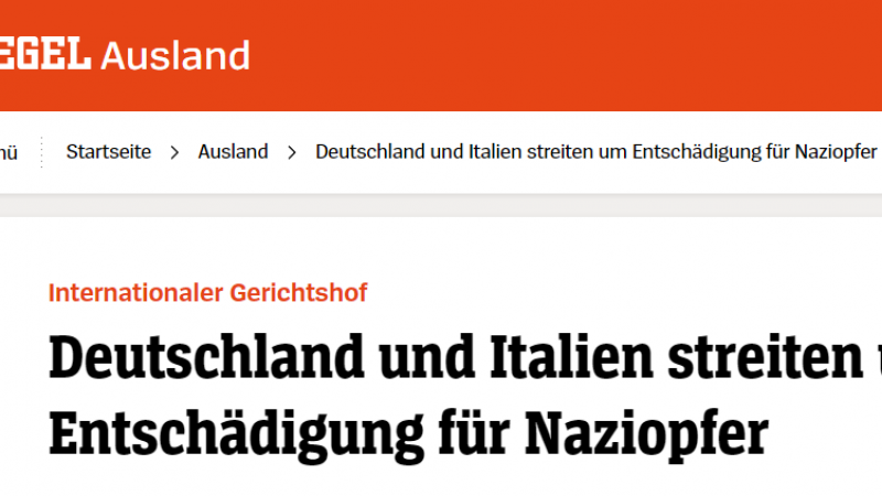 An article in Der Spiegel once again draws the public's attention to the threat posed to the German school, the German Archaeological Institute, the German Historical Institute and the Goethe-Institut in Rome by Italy's demands for compensation for crimes committed by the Wehrmacht against civilians at the end of June 1944. Italy had entered the war on the side of Hitler's Germany on 10 June 1940.