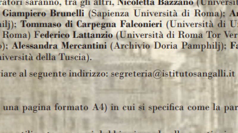 The Sangalli Institute invites applications for an intensive course on Roman noble archives (Caetani, Orsini, Pamphili, Colonna) to be held in Rome from 22 to 26 May.