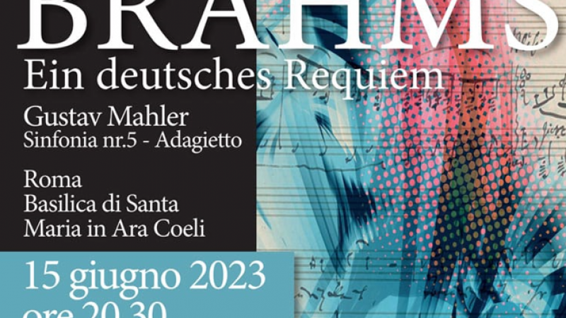 Brahms, Ein deutsches Requiem, and Mahler, Symphony No. 5 will be performed at the Church of Santa Maria in Ara Coeli on the Capitol on 15 June at 8.30pm.