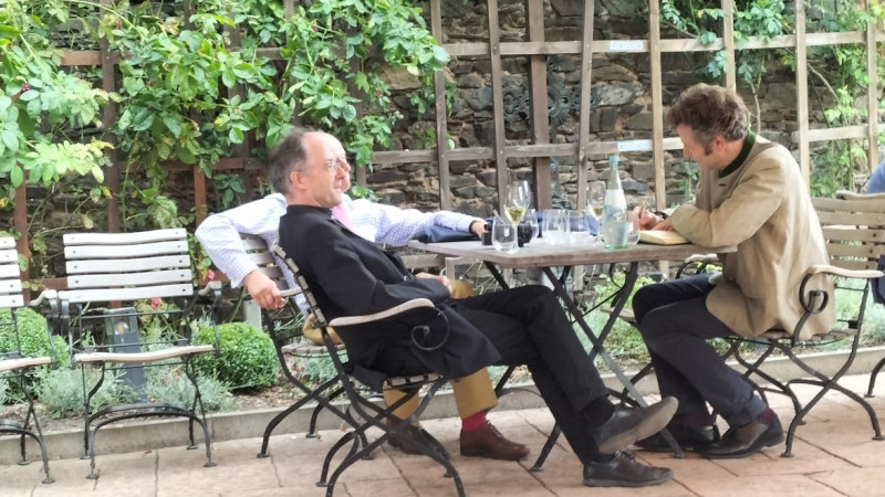 S.H. with Lambert Lensing-Wolff and Constantin Graf von Plettenberg at Reichenstein Castle during the PIAC's journey in the footsteps of Johann Peter Kirsch