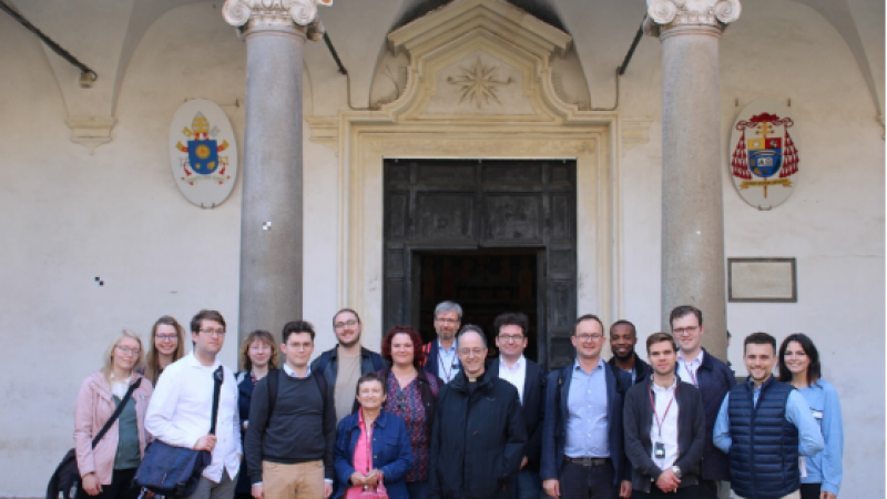 Prof Dr Andreas Bieringer (Liturgy) and Prof Dr Thomas Meckel (Canon Law) from the Theol. Hochschule Sankt Georgen in Frankfurt a.M. organised an excursion to Rome in March with their students under the theme "City of Grace - City of Law", during which they visited Vatican dicasteries and also listened to art and liturgical history lectures on the important church monuments of the Lateran district (including S. Clemente and Quattro Coronati) and the Esquiline under the guidance of Andreas Raub and Stefan Heid.