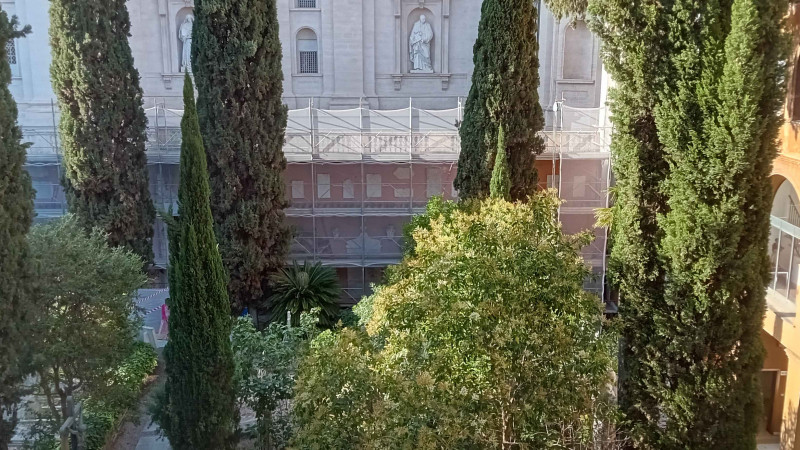 Work has begun, particularly at the entrance and on the balustrade of the historic cemetery wall of Campo Santo Teutonico, and should be completed by November.