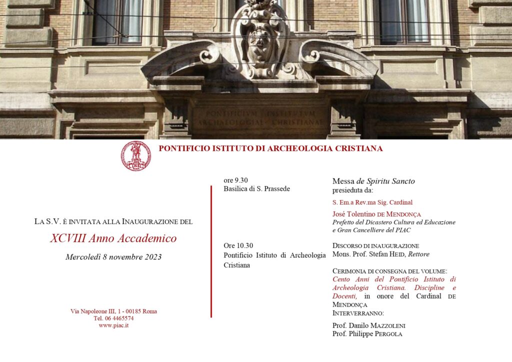 On Wednesday 8 November, the Pontifical Institute of Christian Archaeology will open its academic year 2023/24 (not on 6 Nov as originally planned). On this occasion, the book "Cento anni del Pontificio Istituto di Archeologia Cristiana - discipline e docenti" (ed. by Chiara Cecalupo and S. Heid) dedicated to him will be presented to the Grand Chancellor, Cardinal Tolentino de Mendonca.