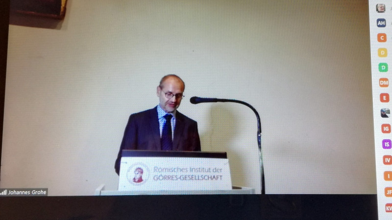 L'Istituto Romano ha superato con successo la prova: La prima conferenza nella storia della RIGG trasmessa online ha riempito la sala virtuale con 33 partecipanti. Anche se non era certamente ancora tecnicamente matura, è stata la prima volta che i membri del RIGG, che non vivono a Roma ma in tutta Italia, hanno potuto partecipare. Il partecipante più lontano è stato l'ex-assistente Ignacio García in Messico. Dopo la conferenza di Andreas Rehberg (DHI) sul libro "Das Buch der Päpste - Liber Pontificalis" (Herder), a cura di Klaus Herbers (Erlangen) e Matthias Simperl (Augsburg), è stato registrato un saluto di Klaus Herbers. I prossimi eventi saranno trasmessi anche online.
