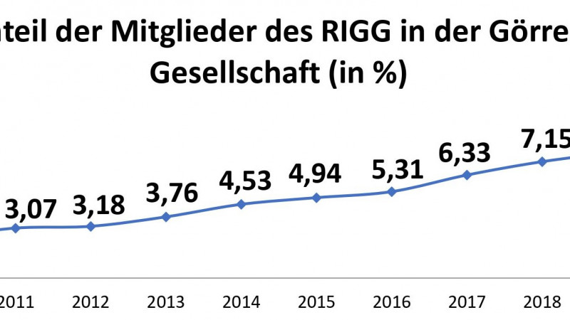 In base alla statistica dei membri della Società di Goerres, la Società si è diminuita di 39 membri, scendendo a 2.773 nel 2019 rispetto al 2018. Poiché nello stesso periodo il RIGG è cresciuto da 201 a 215 membri, la percentuale dell'Istituto Romano sul totale della Società continua a crescere, passando dal 7,15 % al 7,75 % nel 2018-2019. Ciò significa che la percentuale del RIGG sul totale della società è più che triplicata negli ultimi nove anni, passando dal 2,47 % al 7,75 %.